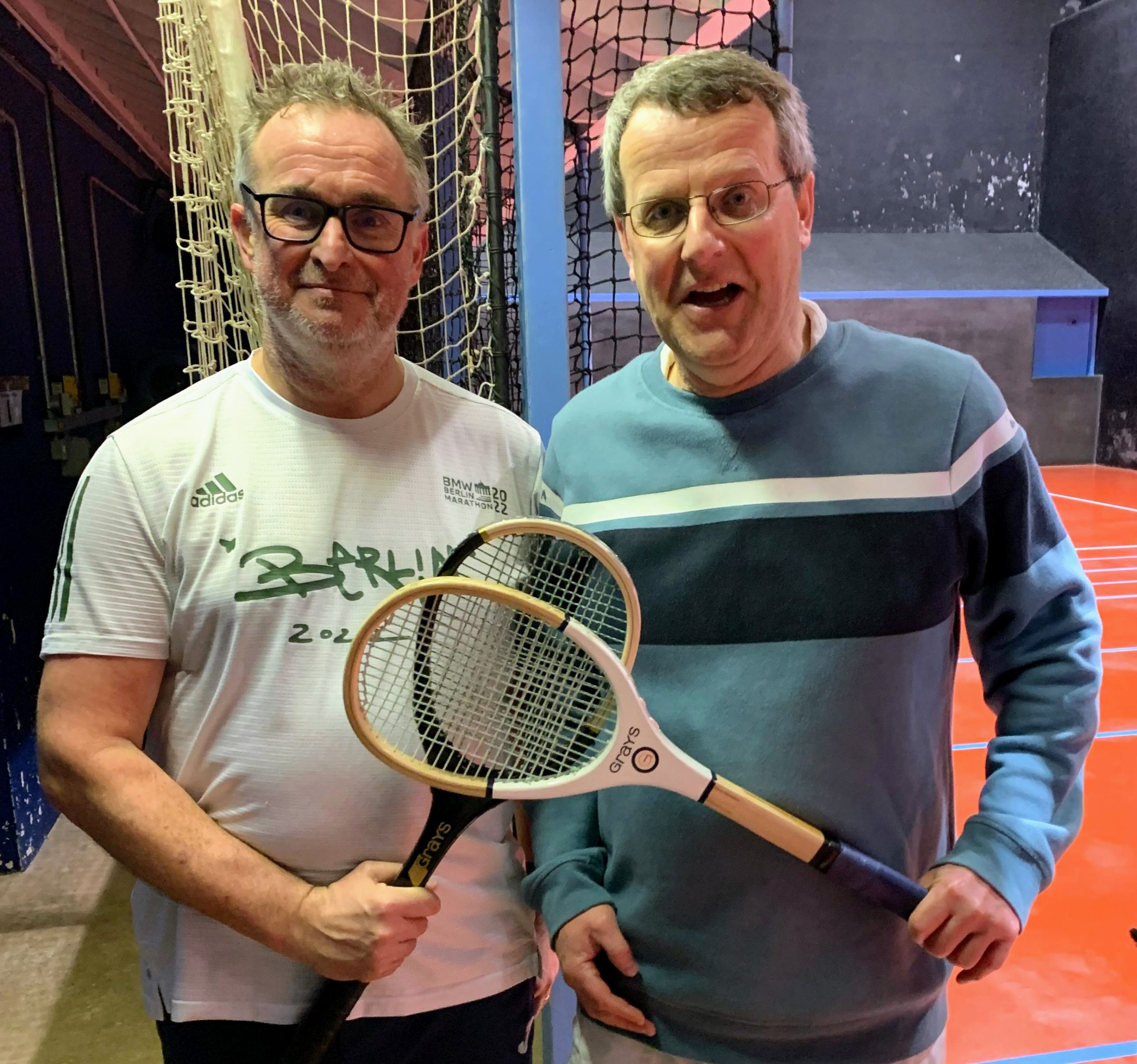 The late replacement Jim McCaughan (thanks Jim!) proved to be the winner, clinching victory with a main wall force into the the Dedans! Below he receives a slab of delicious Sirene chocolate from club stalwart, Barnaby Perks.