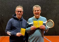 On Saturday it was the 70 group of 5 who did battle in a round robin of the 5 entrants. Carl Dunton prevailed in this group phase (results) winning all his matches including that against the runner-up, Simon Aldous. However they had to paly again in the Final for that coveted space on the CURTC Honours Boards.