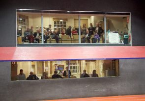 Kay started to play to the crowd, aiming at the winning gallery but settling for a smack at the grille. He switched to a high drop serve, but Giddins did enough in response, benefiting from a tough bounce from the penthouse. Giddins pushed Kay to deuce, and then rounded off the game with a pair of excellent railroads. In the next game, the rallies became longer and longer and the crowd got more excited after Ed hit both a winning gallery and, later, a force into the dedans to win the game so hard that all of the spectators flinched. Fortunately, the perspex held strong. Kay was in control of the game, targeting the corners and making Giddins scramble. An impressive cut-volley on a medium-length chase led to Kay going up 5 games to 2.