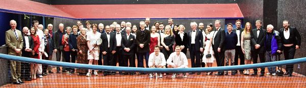 CURTC played host to the Giraffe Club Cup over the weekend to promote students Real Tennis in Cambridge, with 32 players across two divisions playing doubles. The match play was followed by an exhibition match between Ed Kay and Jamie Giddins, before everyone headed out to Jesus College for a black-tie dinner. Huge thanks go to Nicholson Original London Dry Gin for their sponsorship of the drinks reception and to Kees ,Vix, Peter, Simon and Mark for their organisation and marking, and to those who prepared food for the lunch and canapes.