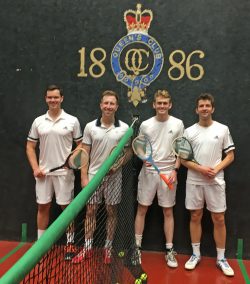 The Bathurst cup team were in excellent form as a packed Dedans was treated to some spectacular Doubles play. It was a great opportunity for Jim to mark top level tennis without the pressure of it being the British Open, however still important for the job to be done well. Jim received some ball making tips from Bryn which was much appreciated.
