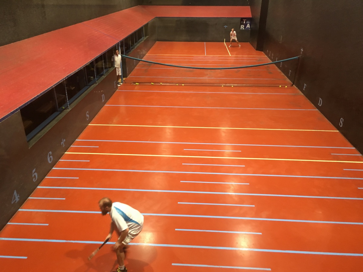 Running over-time, the last few matches of the day was the round of 16 of the handicap singles. Notable matches included Elle Curzon Green (Cambridge) starting with a 43 point handicap advantage and banned chases worse than 3 against Charles Defries (Oxford), and pulled through to a 6-4 victory. Perhaps the most dramatic moment of the tournament came between Trevor Jones (St Mary’s) and Louis Richards (Bristol). At 5-all, 40-all, match point, Richards let go of his racket during his serve, and Jones capitalised by making a chase of a yard. But then a below-average serve saw Richards pummel the ball straight and hard into the dedans to win the match.