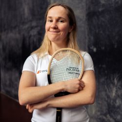 Leamington fielded a team of nine for the weekend’s match against Cambridge for an engaging day of Doubles – first to 10 – and Singles – first to 8. Adam Stokes and Ian Calvert were first up in the Doubles on the more familiar Blue Court, cunningly lulling our guests into what we all hoped would be a false sense of security with a 10 -4 defeat. Meanwhile, on the tricky Green Court, Rachel Hollington secured an impressive 8-2 victory over Cambridge match manager, Christie Marrian, dispatching Christie’s serve with a series of devasting volleys into the forehand corner. Rachel carried her good form across into her Doubles fixture, with Will “the Stork” Windham, resplendent in white silk stockings, in support, partnering her to a 10-9 victory in an enthralling encounter.