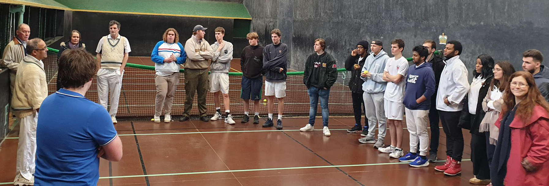 We are very grateful to Andy Smith for organising such a smooth event, and for all his work in running the Giraffe Club, without which CURTC would look very different. The day could not have run without the Pros’ help – thank you to Kees, Peter, and Mark for a mammoth day of marking! We would also like to thank Pol Roger for their supply of Champagne (always to be drunk responsibly), but the final word of thanks must go to the Giraffe Club itself and its generous benefactors. At its heart, CURTC aims to broaden the experience of real tennis and encourage more people to play, and the support of the Giraffe Club is essential to achieve this – thank you!