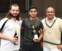 Colin’s Singles match was a David and Goliath affair, in which Colin played the giant’s part, felled by Leandros Georgoulis, a youthful and diminutive opponent, and one of the rising stars of CURTC’s youth academy. Next up on the Green Court Ian Calvert also struggled with the conditions, and the day started to slip away from Leamington’s grasp. Natalie too, in her singles encounter with Jin Lee was not quite able to reprise her form from earlier in the day. In the final rubber, Will, the Stork, got into something of a flap, failing to produce the quicksilver display of which he is capable, However, true to the club’s traditions, and nourished by Cambridge’s generous hospitality, the Leamington contingent remained ebullient in spite of succumbing to an overall 9-4 defeat on the day.