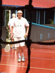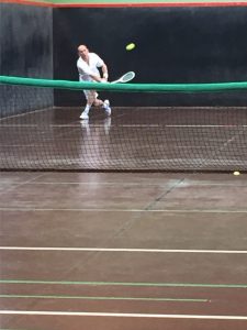 As for the rest of the CURTC stalwarts, Gary Weller clocked up the highest number of miles run around the court in a thrilling match against the MCC’s Paul Cattermull, John Bailey and Kate Kirk almost pulled off a three-setter vs Richard Boys-Stones and CURTC defector Paul Forster (standing in for an MCC player who failed to leave the Pavillion) but went down 5-6 at the very end, Vix Harvey for once couldn’t quite reach everything in the corners, although the first set against Richard Buxton could have gone either way at 5-5, and Keith Beechener and Julian Stafford simply played too early in the morning for their respective joints and heads against a more sprightly Tom Carew-Hunt and Paul Cattermull.