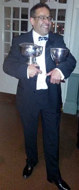 Any event with a champagne sponsor is special, any event with a Real Tennis loving sponsor at Lords is even specialer, thanks Pol Roger! I got to congratulate the Gals and heard about Karen’s 2 hour marathon (“I decided I needed a coke, and the only way to get a coke was to get the third set over with”). And chat with some of the participants whose good humour was remarkable, understandable perhaps from Cambridge but noteworthy from Oxford, as well as some of the non-participants, including our very generous and genial sponsor, a very and rightly proud Kees, a typically Freddy Freddy, and a less hobbling Bernie. A splendid dinner in the Long Room followed, it really is quite a setting and inspired by the occasion, out came the camera…..