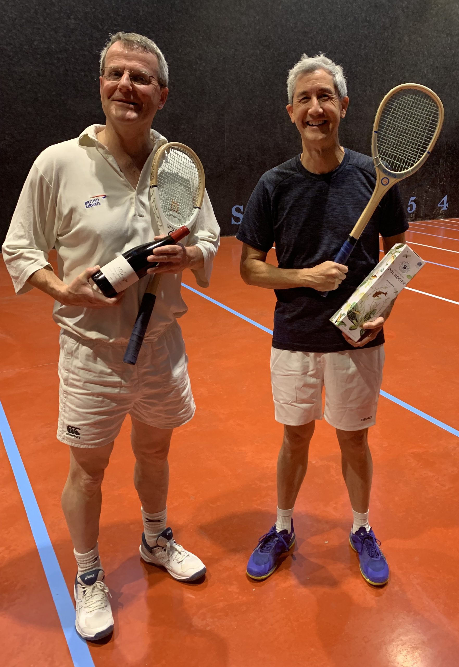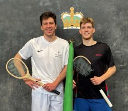 In this year’s CURTC Doubles Championship four groups of teams played off handicap over the summer in a round robin format to compete for places in the semi-finals. In the semis, Group A winners Lloyd and Aldous (75) were beaten 8-3 by Glasscock and Godsill (62), off a tough handicap difference of 13. In the other semi, Pearson and Brown (27) beat Menzies and Marsh (46) 8-7 in a very close-fought and entertaining battle, an even bigger handicap hurdle for the winners. This of course left a very tough handicap difference of 35 for Pearson and Brown vs Glasscock and Godsill in the final, and this proved too tough even for that very high quality tennis pairing, and they lost 8-2, to give Glasscock and Godsill their first ever club title (and indeed their first real-tennis honours of any sort!).