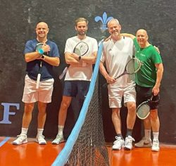 The final of the final CURTC’s 2025 Category Tournaments was played last Sunday when Ed Pearson and Roly Denman met in the 20-29.9 handicap Category Tournament. The other Category tournaments are played on a single day but thanks to the endeavours of 20 something handicapper, Charlie D’Oyly, the 20’s used a format based on longer matches. A good crowd filles the Dedans and Clubroom, not just drawn by the prospect of Charlie’s generously provided croissants.