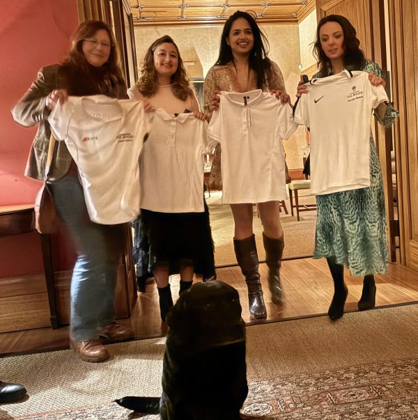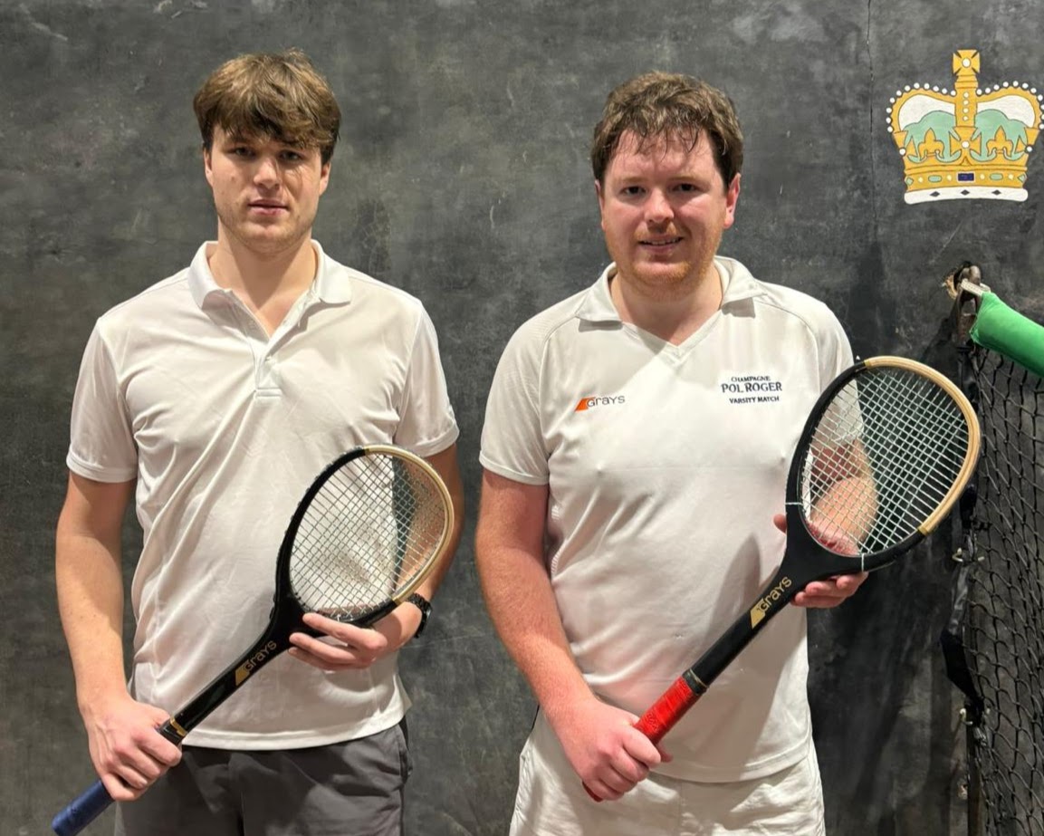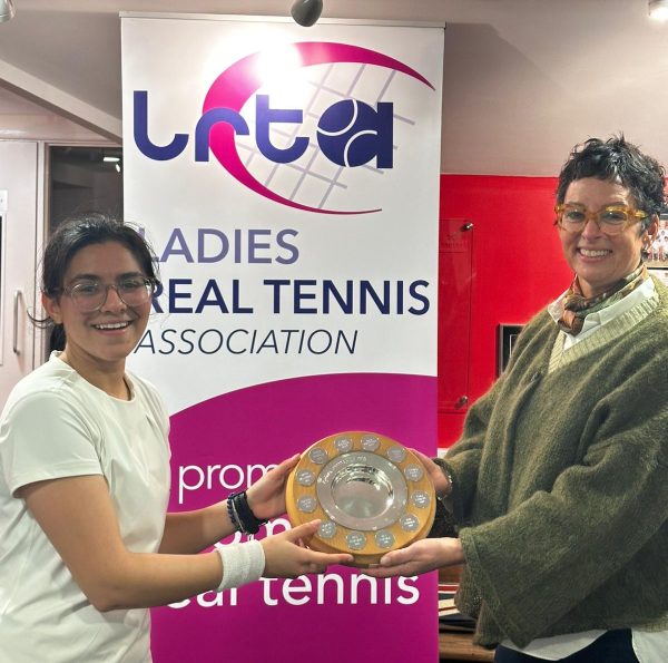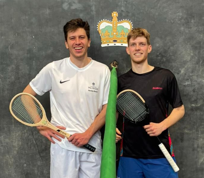 Newmarket then took to the courts again, getting the better of Hatfield, before it was the light blues’ turn to face Prested. Riya claimed victory in very short order with her pace around the court both during and between points proving too much for her opponent. Meanwhile a victory for Felicity was arguably only prevented by the necessarily strict enforcement of the time limits (she was 40-0 up with the score at 4-4 when the buzzer went!). There was much favourable comment among the spectators in the dedans on both the quality and energy on display – one marker observed that he couldn’t get the words ‘change ends please’ out before Riya was at the net ready to swap places with her opponent – another commenting that ‘Claire Fahey better watch out’ as Felicity beat a short chase with a volley off the penthouse. A victory in the doubles ensured that once again Cambridge took the honours.