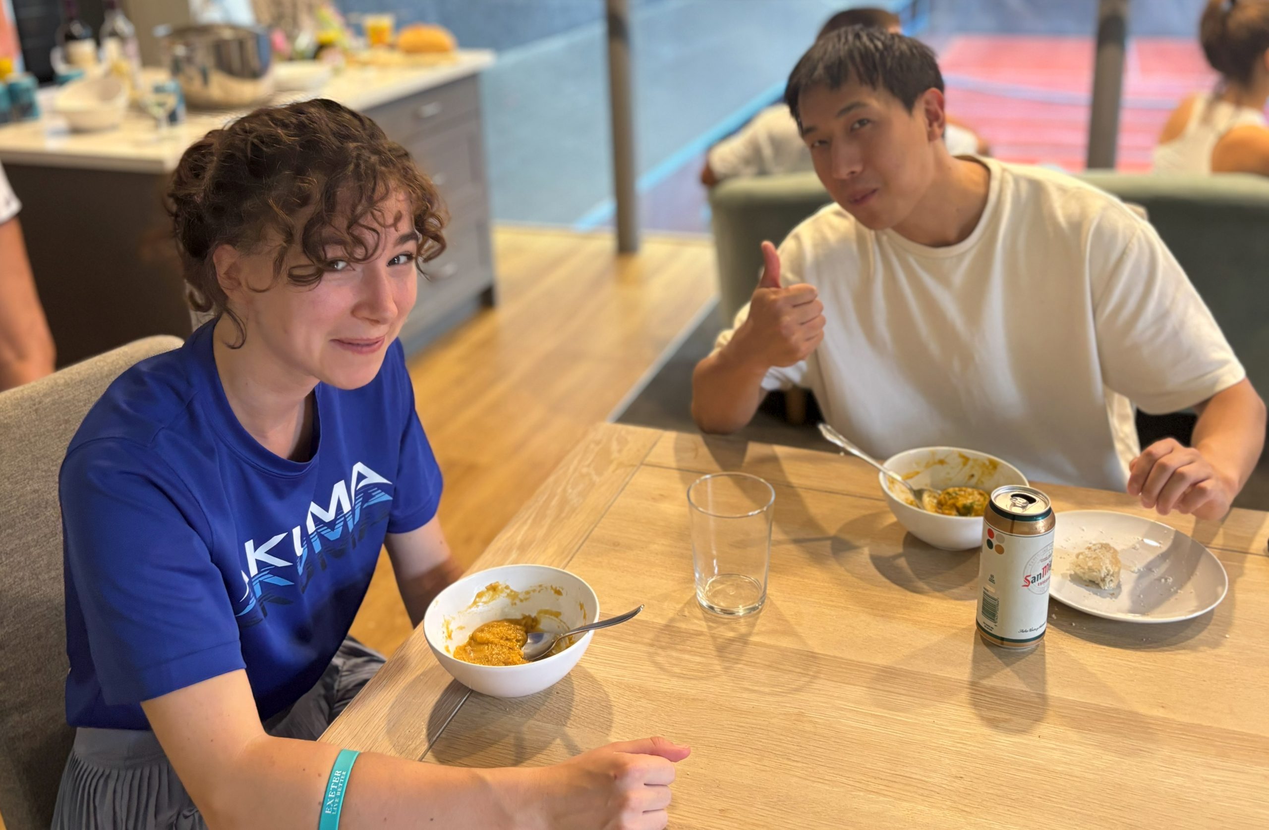 James had a significant handicap disadvantage but was clearly in form having been triumphant the previous day in the Cambridge Mixed Doubles. The ever smiling Danny however never gives up… James drew first blood but games were traded until 2-all. At which point Danny eked out a two game lead before being pegged back to 6/5. Maybe the previous day of ~160 mins on court caught up with James but Danny prevailed in taking the final two games of a keenly played contest. The stream can be found here: https://youtu.be/-6zGcwc4RaA?t=6410