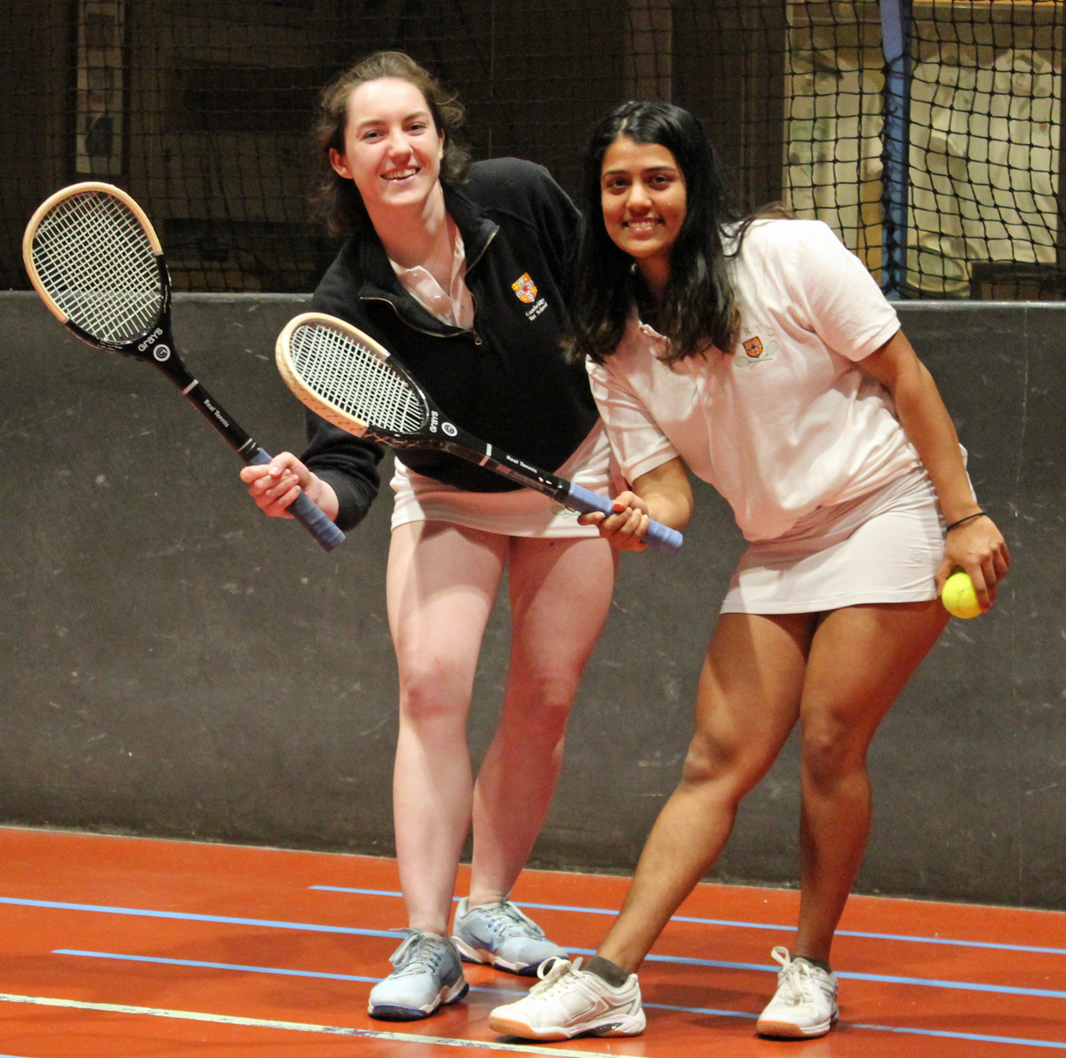 Oxford also got off to an excellent start in the Men’s match, as Ben Barber (Oxford) was able to play the ball all over the court and out of the reach of Kevin Heffernan (Cambridge). Cambridge could hardly even catch a break in the doubles. The strategy of playing Rosie Taylor (Cambridge) at the net for the first time didn’t pay off for the Giraffe Club Cup finalists, as Taylor and Siu were beaten comfortably by Jenny Jones (Oxford) and Lewis. Finally, in the Women’s first seed doubles did Cambridge start to look competitive. Roker and Krittika d’Silva (Cambridge) were running neck and neck with Reyner and Olivia Becher (Oxford), before the dark blue pair pulled out a decisive lead at 7-5. But d’Silva and Roker were determined not to let Cambridge down, saving an impressive seven match points (including a dedans on chase a yard) before finally succumbing 6-8. Cambridge had another glimmer of hope in the Men’s first seed singles, as Aaron Wienkers (Cambridge) found some fight against Freddie Freeman (Oxford), but despite some impressive tennis, lost 4-6 4-6.