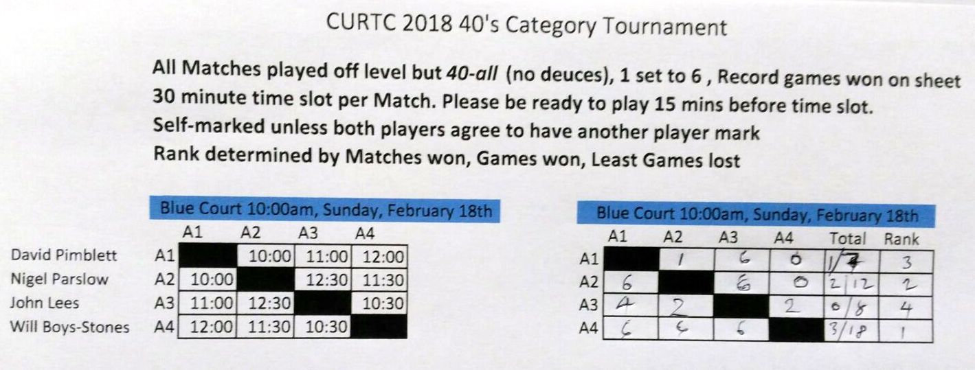Congratulations also to Will Boys-Stones and Nigel Parslow who will be contesting the 40’s category Final, also at 10:20am (but on the other Court…)
