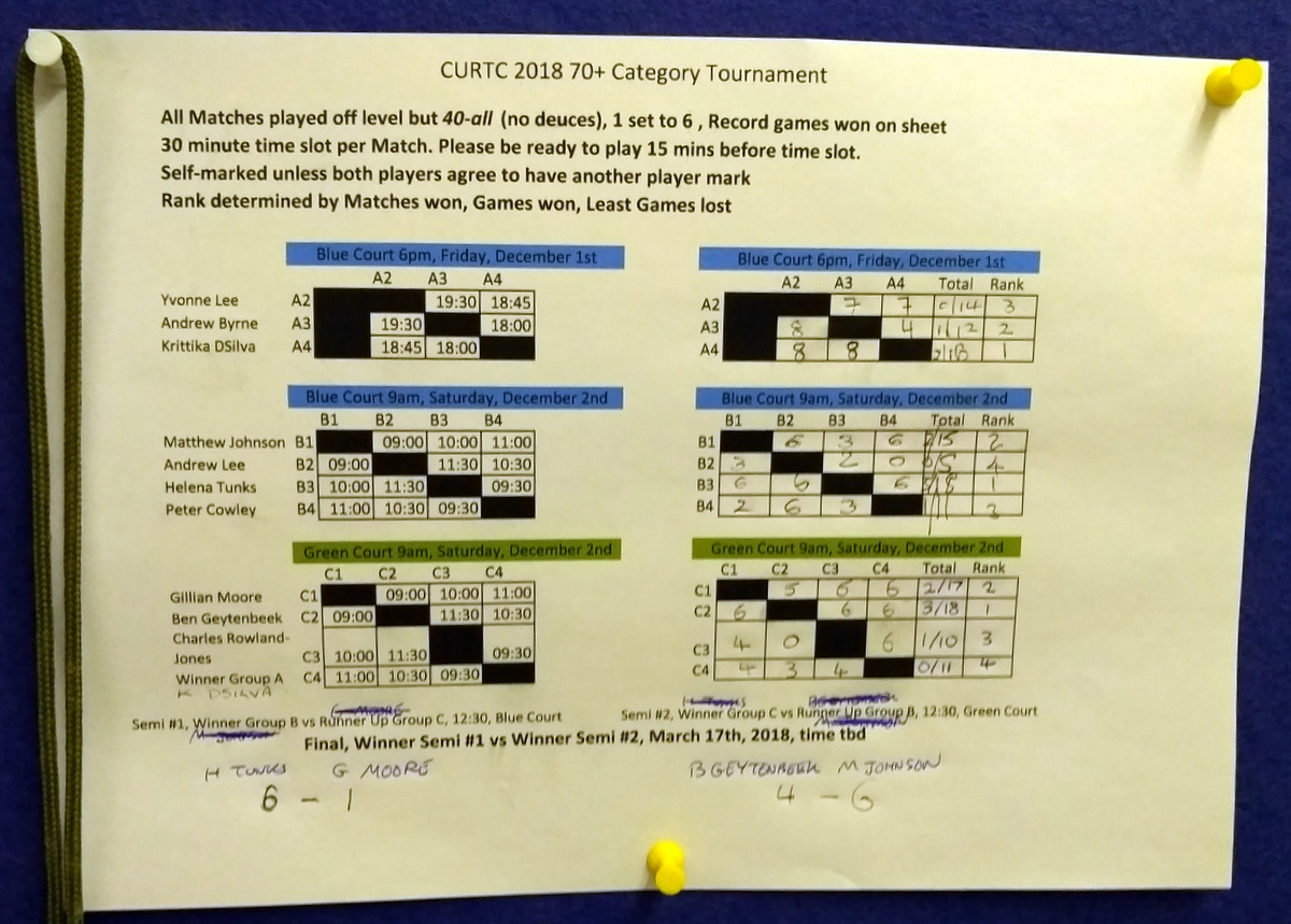 Saturday March 17th, when the CURTC Ladies Championship and all the Category Tournament Finals will be decided.