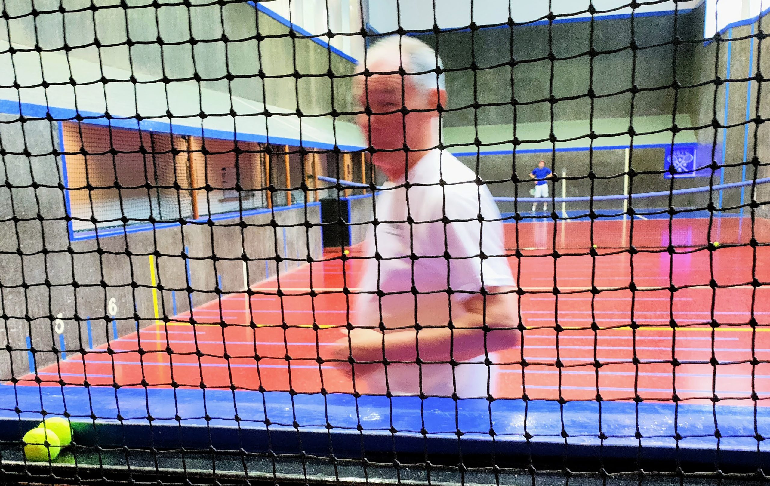 The day started well with the younger Revier, Camice, winning a three setter amidst much laughter. Then it was his turn, the older Revier. He’s two different players. This time the loser turned up. Sometimes he just enjoys himself. I do wish he’d take it more seriously more often. The third match was our Tom Nicoll against their Ben Hobkinson. We sneaked Tom is as a bandit. That they’d done the same with Ben had the pair deliver a match way better than their mid 60s handicaps. My highlight was playing with the Hobkinson children, 10 and 8, who’d found themselves a dog to play with all day. Christie Marian had said he’d never won at Holyport and, indeed, didn’t break his duck though this time he put up a better defence.