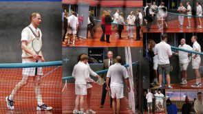 I promise you this is the last… Friday of the DofE Tennis Challenge was Seniors day and featured three matches with a brave HRH. In the second match with Anthony Dean partnering HRH against Vix Harvey and Morten Landrock, the banter level hit 11 although Anthony seemed to be living on borrowed time. Not so long ago, that amount of poaching from Royalty would have earned an extended stay in the Tower (or worse).