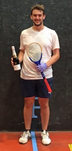 In the Division 1 finals the matches were closer with the President getting full value for her money with all 3 of her matches going to 8/7. Vix def Andy Smith in the quarter 8/7 and then Marco Bonaventura 8/7 but was unable to prevent Edward Furst from winning that final game at 7-all in the Div 1 final. Furst, who has recently completed his studies at the University took the prize of our favourite champagne.