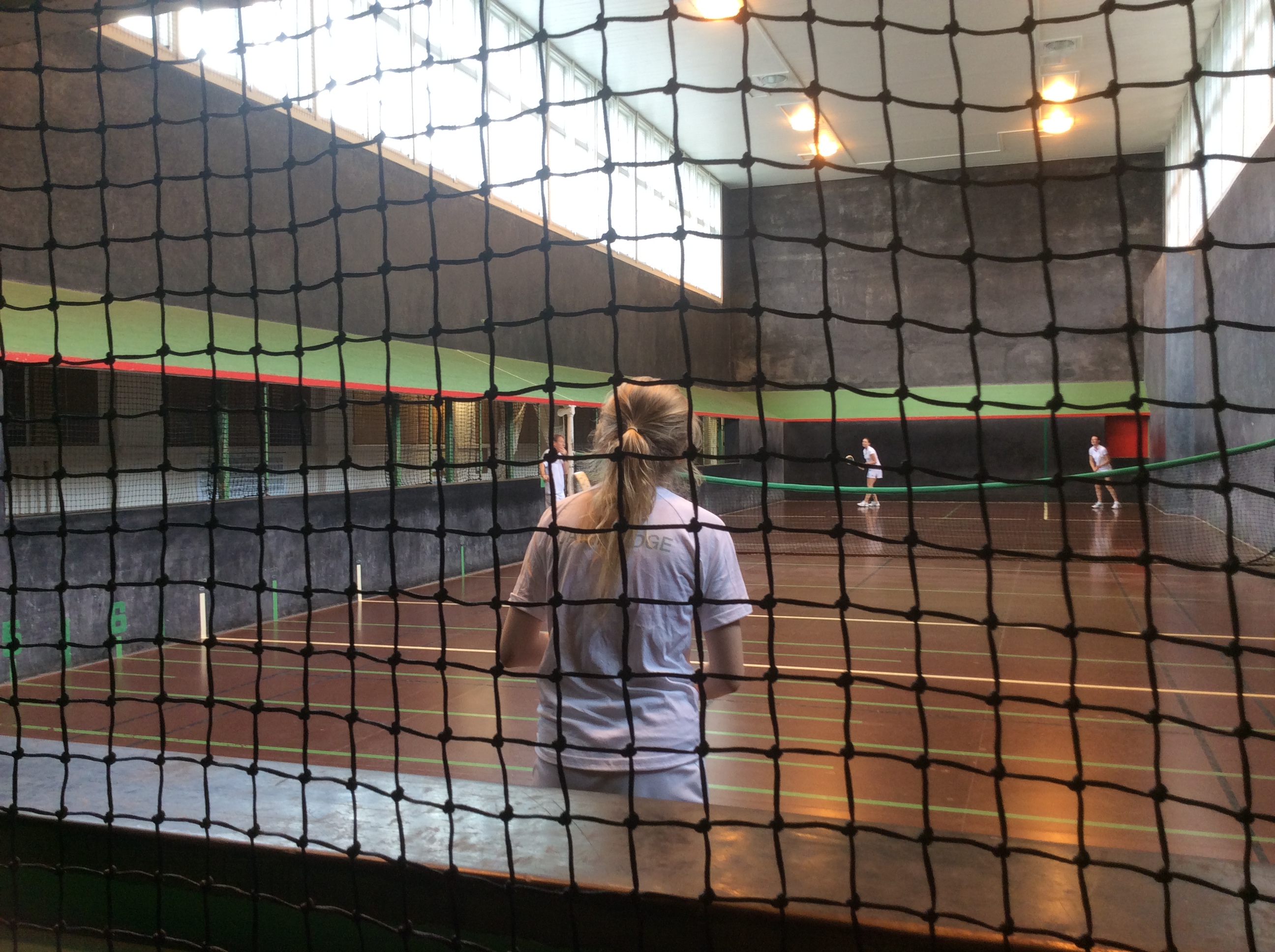 In sweltering heat, the afternoon session kicked off with a doubles match between Carina Mouritsen-Luxhoj and Lucy Barrett of CURTC vs Sarah Lambie and Alex Soltynski of RTC. The RTC team took no time to warm up winning 8-2. Mouritsen-Luxhoj then took on Soltnski on the Green court, while Barrett took on Lambie in the heat of the Blue Court. A lack of court time over the exam period showed for Barrett, losing 8-4 to a very tough opponent in Lambie. Unfortunately Mouritsen-Luxhoj shared the same fate, despite producing some incredible shots into the dedans and being a point away from a game on several occasions, she went down to Soltynski 8-0.