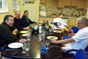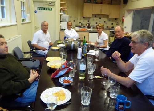 Back on Blue, Kate Kirk and David Hope handily won their Singles and Doubles over Peter Lawlor and Ron Mutton giving CURTC a 6-2 match result. Ron’s ‘Mutton Chop’ serve is apparently quite lethal on Oxford’s Court but was handled most effectively by Kate. Much of lunch was spent in detailed and animated discussion as to why this might be as can be seen from the pictures.