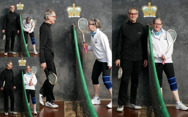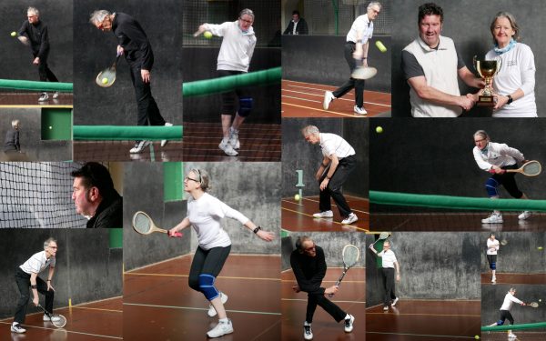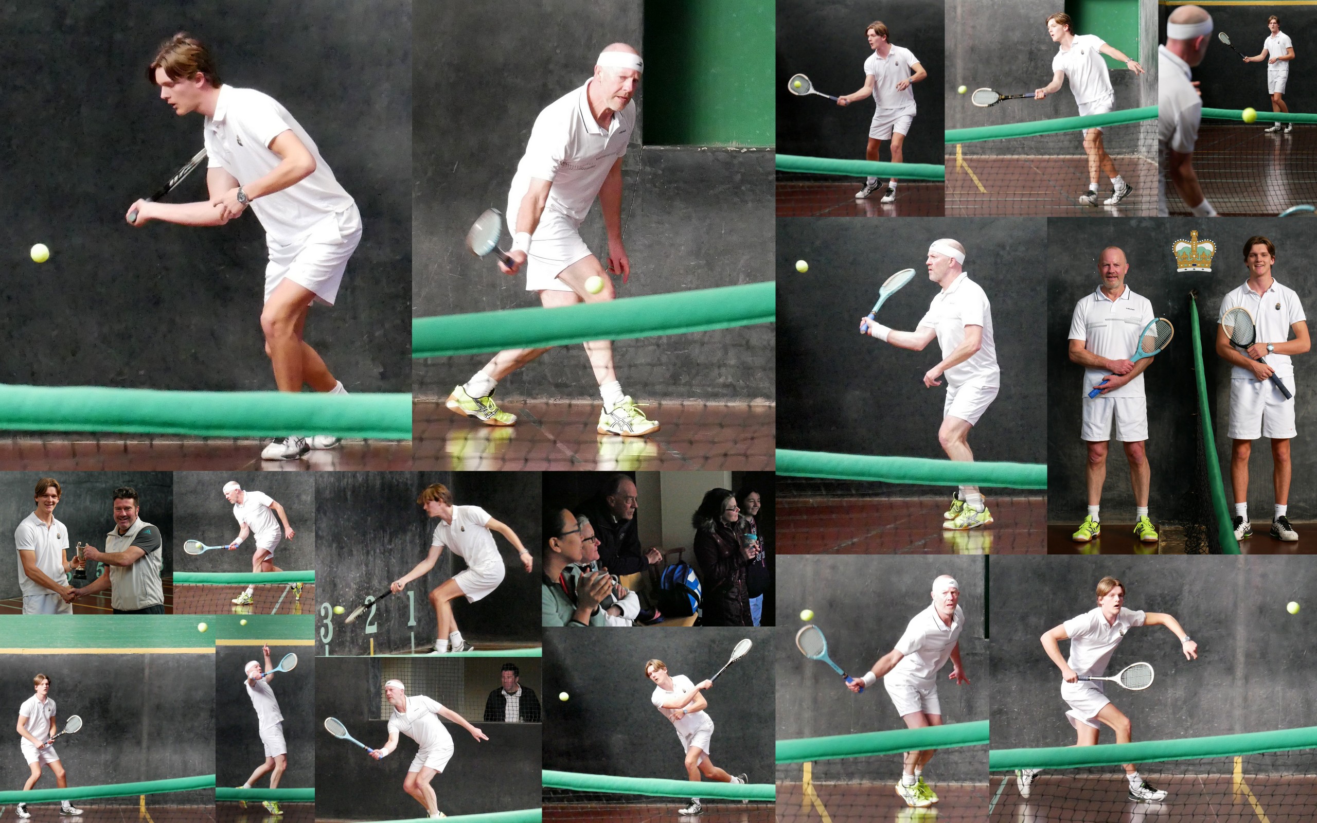 We kicked off with the 20s Category Tournament final in bright sunlight (streaming through the windows, I should add) and for just a moment an upset seemed possible as Charlie edged out to a 5-3 lead. But Patrick found another gear (and one particular backhand cross court that had us all gasping in the Dedans) and took the match 8-5.