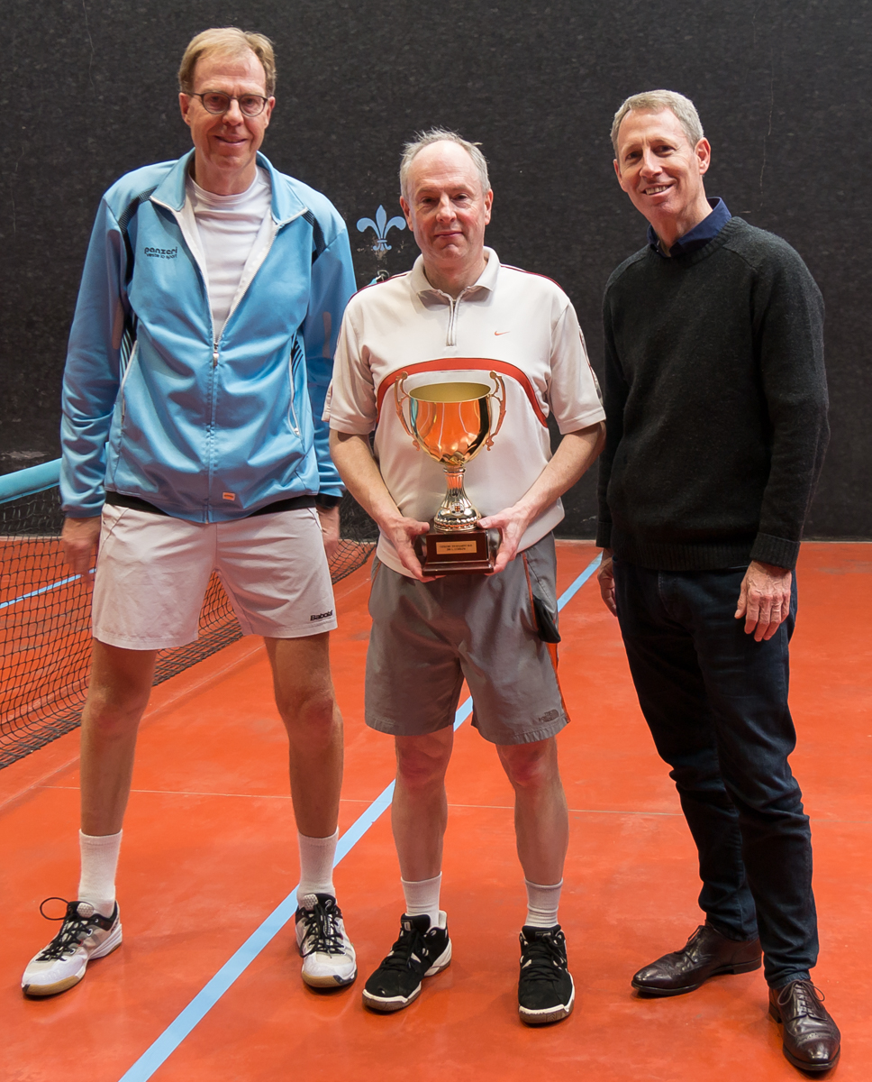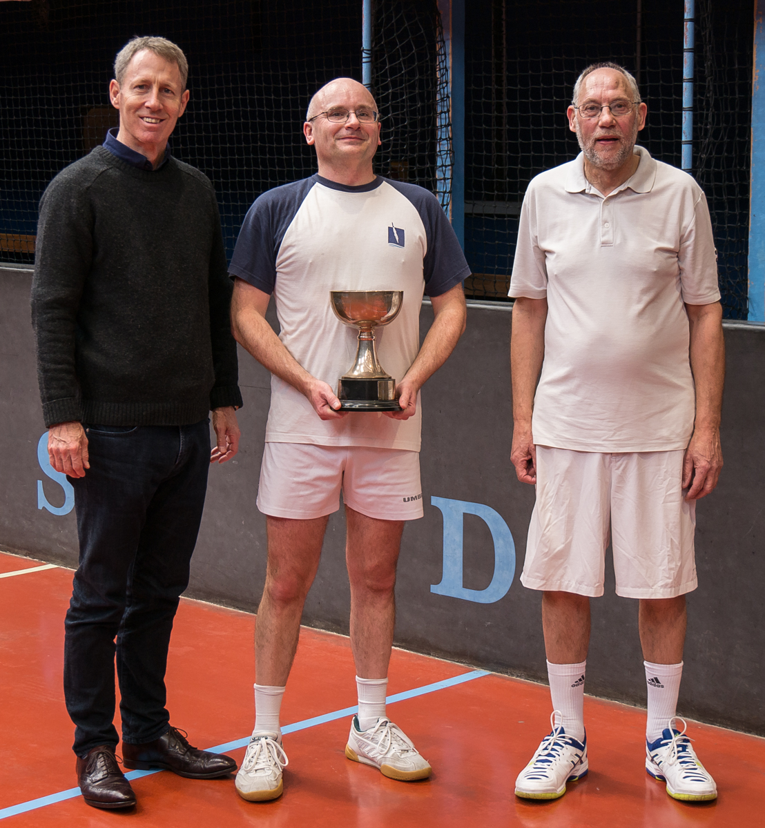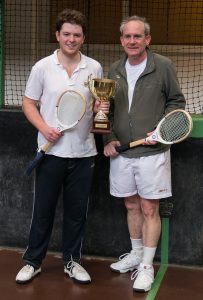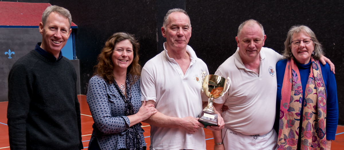 Next up was the prestigious Graduate Cup Final. Richard Bowers was back in the final, having won the tournament in 2016. He was playing against first-time finallist Joe Zygmunt, whose supporters filled up the Cambridge dedans. The handicap was a respectable Rec 15/Owe half 15, so both players had a chance to be competitive. However, Zygmunt struggled to find the right length of his left-handed railroad serve, letting Bowers into the game with a few easy points each game. He was volleying very well, making Bowers run around a lot of the court to retrieve the ball. Ultimately though, Bowers was strong enough to seal victory comfortably 8-2.