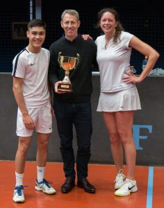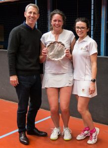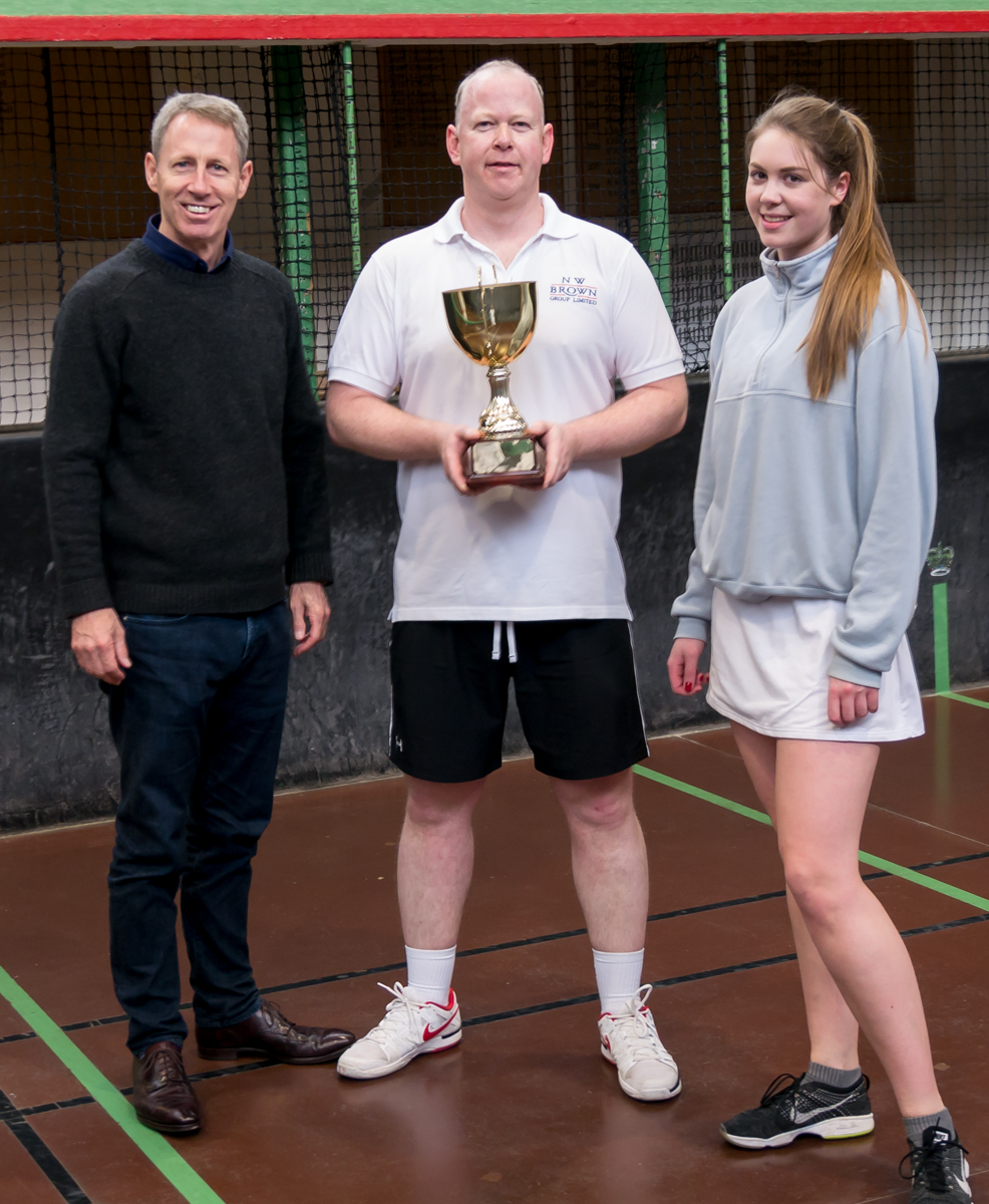 Months of real tennis tournaments culminated in the CURTC Finals Day Sponsored by Hannay-Robertson Financial Planning. Places on the honours boards in the Green Court Galleries were at stake. Play began on the Green Court with the 50s Category Final between Ben Geytenbeek and Michael Firth. The pair exchanged games early on, with Firth able to put the ball into places that Geytenbeek couldn’t quite reach. However, after a good service game at 4-all, Geytenbeek was able to step into another gear and find some extra momentum. Hitting the ball cleanly, he went through to win the match 8-4. Following them on the Green Court was the 70s Category Final between Elle Curzon-Green and Paul Fox, although both had crept down into the 60s since they qualified back in early December. Curzon-Green was unable to find her form from the recent Varsity match at Lord’s, while Fox was able to muscle everything back over the net at her. Fox raced off to a quick start, and while Curzon-Green started to fight back, Fox held on to finish the match 8-4.