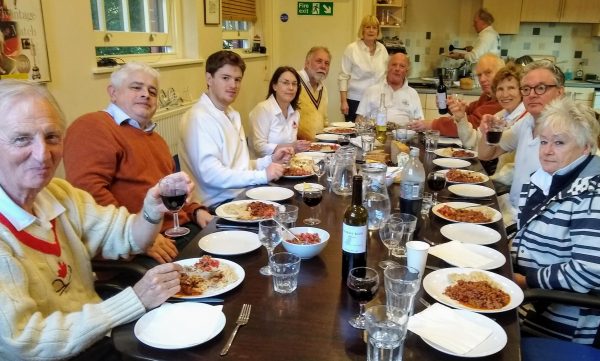 When the dust settled, it was a 5-3 Hardwick victory with CURTC’s blushes being spared largely by Guy winning both his matches. So it was up to the Club Room to be entertained by James and Charlie (see below) and excellent chilli washed down with some perfectly paired rouge from the Iberian peninsula.