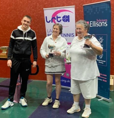 Sarah Sullivan had been playing excellent consistent tennis throughout, solid and safe and she continued this way in the Final, and with a hefty handicap in her favour, kept up with Ulla Petti whose athleticism had been very apparent in all her matches, But by 4/2 to Ulla, the strength and accuracy of Ulla’s shots into corners took their toll, though Sarah never stopped trying. 6/3 to Ulla.
