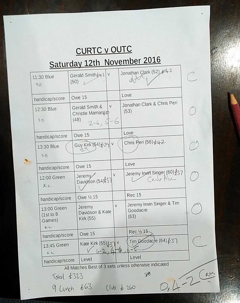 enemy esteemed rivals put Cambridge on the wrong end of a 4-2 result. Honourable mentions go to Kate Kirk and Gerald Smith for winning their Singles matches to make it some kind of contest! And it all started so well with Gerald’s victory on the Blue Court but Johnathan Clark turned it on for the Doubles and Chris Peri covered the Court through a degree of elasticity that defied belief! Thanks to all, especially Jeremy Irwin-Singer the Oxford match manager. We look forward to our next visit to the other place.