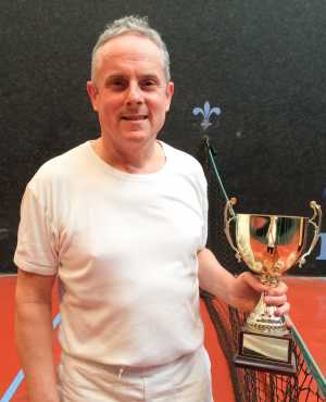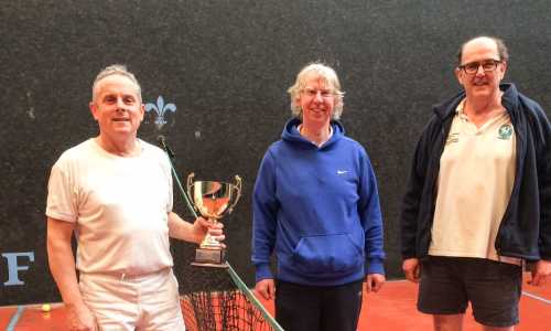 The ball rose sharply off Paddy’s racket and flew high and long, and into the dedans. 40-30 to Paddy. The game then went to 40-all and the final point was taken by Paddy Ward to become the 30-39 Category Champion.