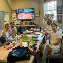After experiencing a little more Belgian countryside than expected, outgoing women’s captain Stacey, Phoebe, and myself arrived in Paris – soon seeing evidence of Olympic preparation. With a packed schedule of Tennis, we were on court within a few hours, having passed near the Arc de Triomphe which was sporting the Paralympic logo! We spent a couple of hours getting used to playing tennis two floors up – practising our serves and some back wall drills borrowed from Kees.