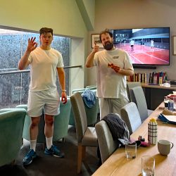 Finally, despite giving away 10 handicap points, Phoebe and Stacey served up a double bagel with a strong display, and we hope for a potential rematches in future to demonstrate our progress! Having played many rests over accumulative 25 hours on court, we all enjoyed a rest on our onward journeys – and are all very much looking forward to more real Tennis next year.
