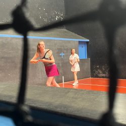 The final capped off the day well – Grey and Martha settled into a game of excellent rallies. Balls flew into the dedans off both rackets, and Grey’s consistency paid off, finally winning 6-2. Both players gratefully received bottles of Champagne, generously provided by Pol Roger! Many thanks to everyone who came along and played in good spirits, with particular thanks to the Giraffe Club supporting the afternoon!