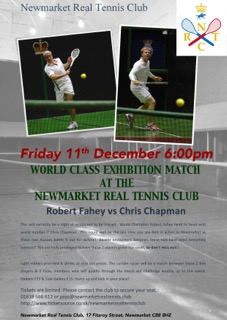 Dear Pros at Cambridge, I would like to let you know about the exhibition match NRTC are hosting in December. I’ve managed to secure Rob Fahey and Chris Chapman to play head to head in an effort to raise some funds for the club, show some local members some top class tennis and generally try and increase the awareness or this sport in the local community.