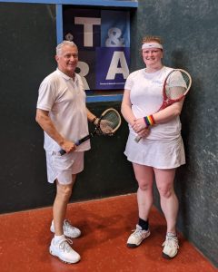 In the final, Rachel kept her momentum going, chasing everything down and hitting winners every opportunity she could.  Unfortunately for Alan, a previous injury had come back to haunt him in the semi-final.  Had he run down all of Rachel’s shots like he had in the previous matches, this could have been a very close affair, but Rachel’s pressure was relentless and she deserved the win.