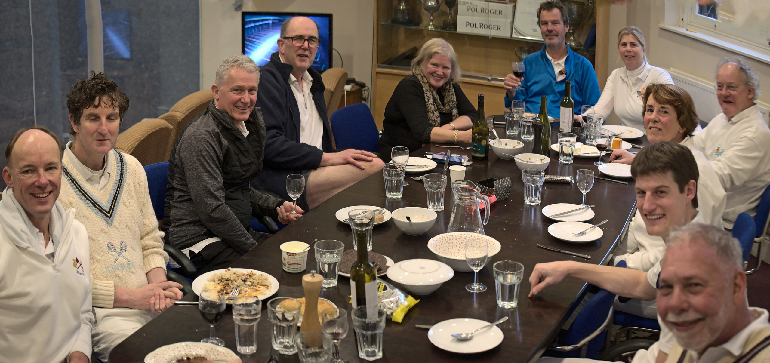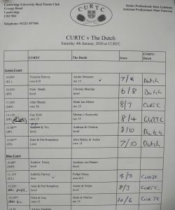 At 5-all, Professor Kirk’s Chilli seemed to be the best idea for a tie breaker. But to get there (5-all, not the location of the Chilli), we had a couple of 8-7’s one going Dutch, the other not. I had the slightly unnerving experience of standing (literally) midway between Peter (standing in for the unfortunate Andrew Petrie) and Andreas. With the occasional shrug and grimace to Vix in my role but on the opposite of the net. We rushed to 8-all on our way to a set to 10. I held my nerve, i.e. kept out of the way as efficiently as possible, and we eeked out a 10-8 win. Many thanks also to our very own newly haircutted Mark who leapt from the Marker’s box to battle Andreas to 40-all in a one game third set tie breaker after Andrew was forced to retire. And last but by no means least, many thanks to Marker, Kees and Chef extraordinaire John Trapp for another memorable evening!