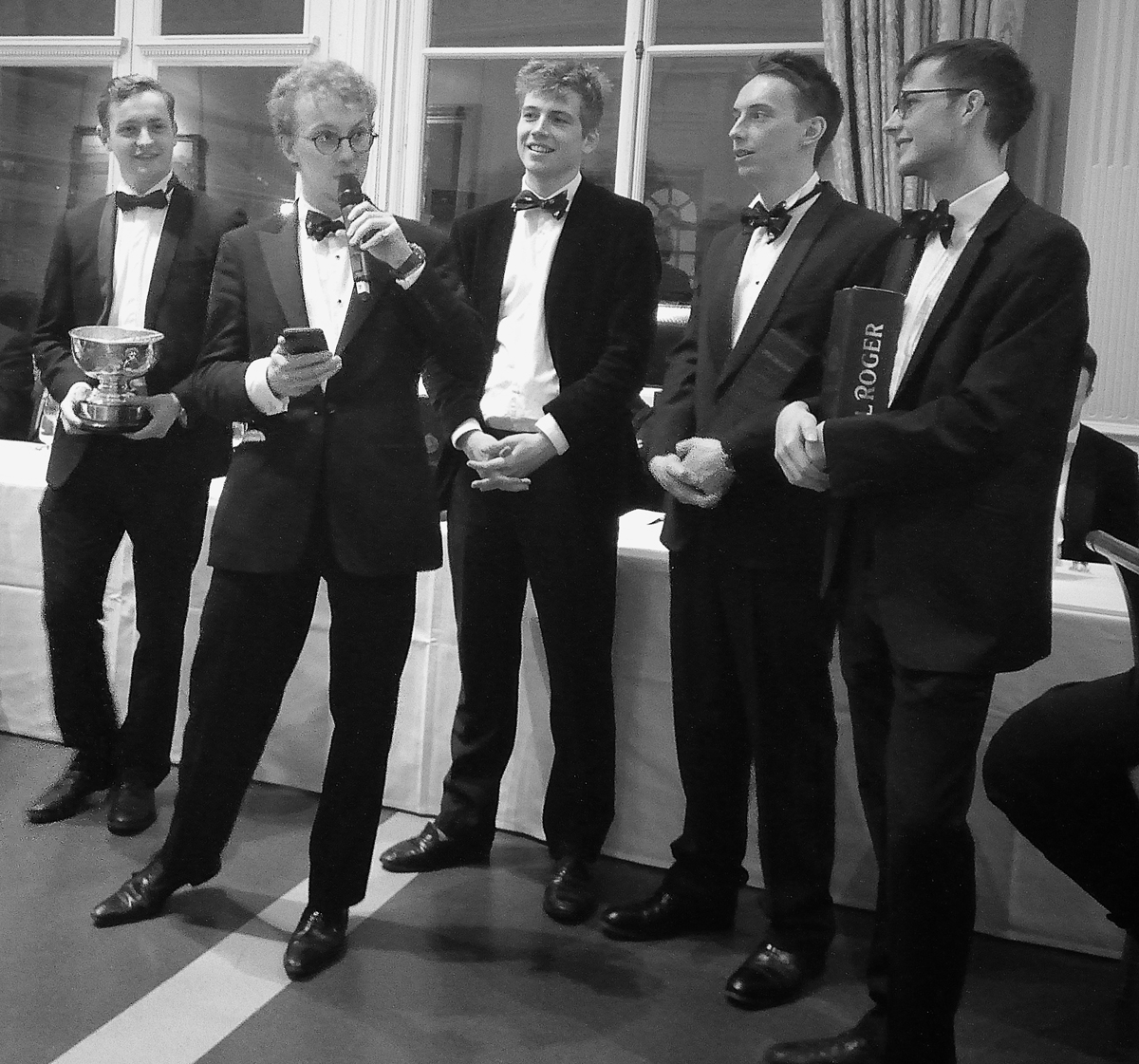 The final match of the year was between Ed Hyde (Cambridge) and Rory Giddins (Oxford). Giddins looked really calm in his retreiving, playing the walls well and made Hyde work for it. Hyde struggled to get into a good rhythm. Giddins seemed to be able to make the ball come off the tambour at any angle. Giddins ran away to a 3-0 early lead. Hyde was having to run to both sides of the court, and several times ended up outstretched sliding across the floor on his stomach. Giddins simply had an answer to everything Hyde threw at him, and could finish the rally as soon as he wanted every time Hyde game him a loose ball. Giddins raced through both sets, denying Cambridge a final victory.