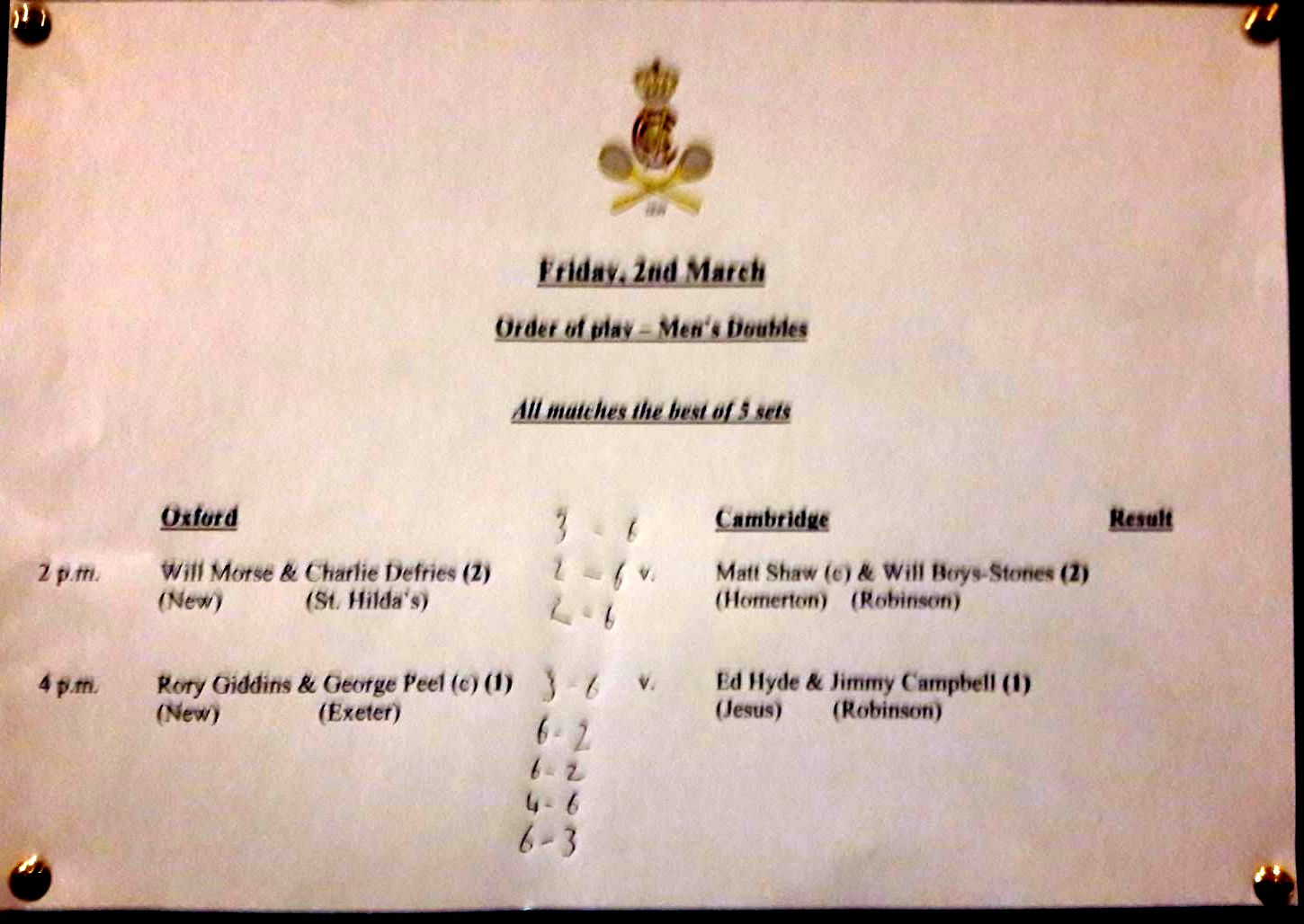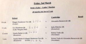 Not going Cambridge’s way in the Ladies Varsity but our team are at a serious handicap disadvantage. Kudos to Helena & Alexandra who grab a set in the 2nd Doubles!